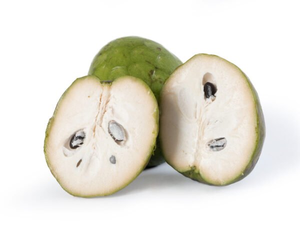 La chirimoya es una fruta de forma ovalada con una piel verde y escamosa. Su pulpa blanca es suave, cremosa y extremadamente dulce, con un sabor que recuerda a una mezcla de plátano, piña y pera. Es rica en vitaminas C y B6, y en fibra. Ideal para consumir fresca, en batidos o postres.