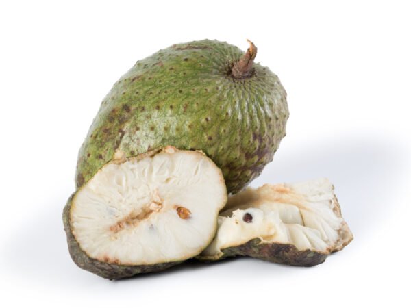 La guanábana es una fruta grande, de piel verde y espinosa. Su pulpa blanca es suave, cremosa y de sabor agridulce. Es rica en vitamina C, potasio y antioxidantes. Ideal para consumir fresca, en jugos, batidos o postres.